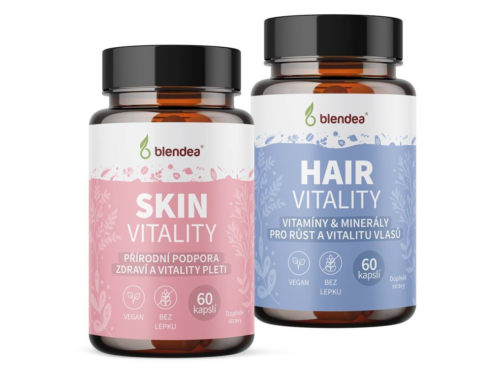 S tím vám pomůže balíček Blendea Beauty set: kapsle Skin vitality pro krásnou pleť a Hair vitality pro zdravé vlasy. | 2 x 60 kapslí