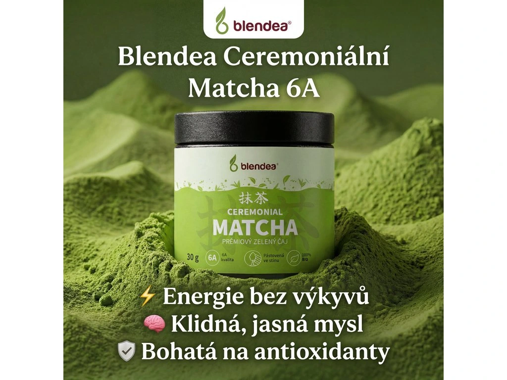 Ceremoniální Matcha 6A Blendea je zelený čaj nejvyšší ceremoniální kvality, jehož listy jsou pěstovány ve stínu pro přirozeně bohatší obsah L-theaninu a hedvábně sladkou chuť.