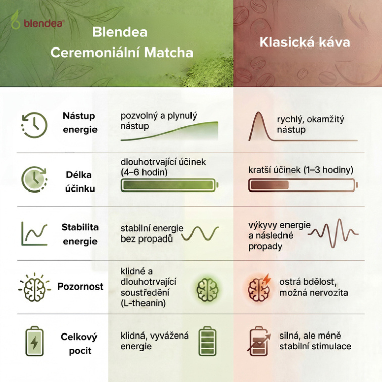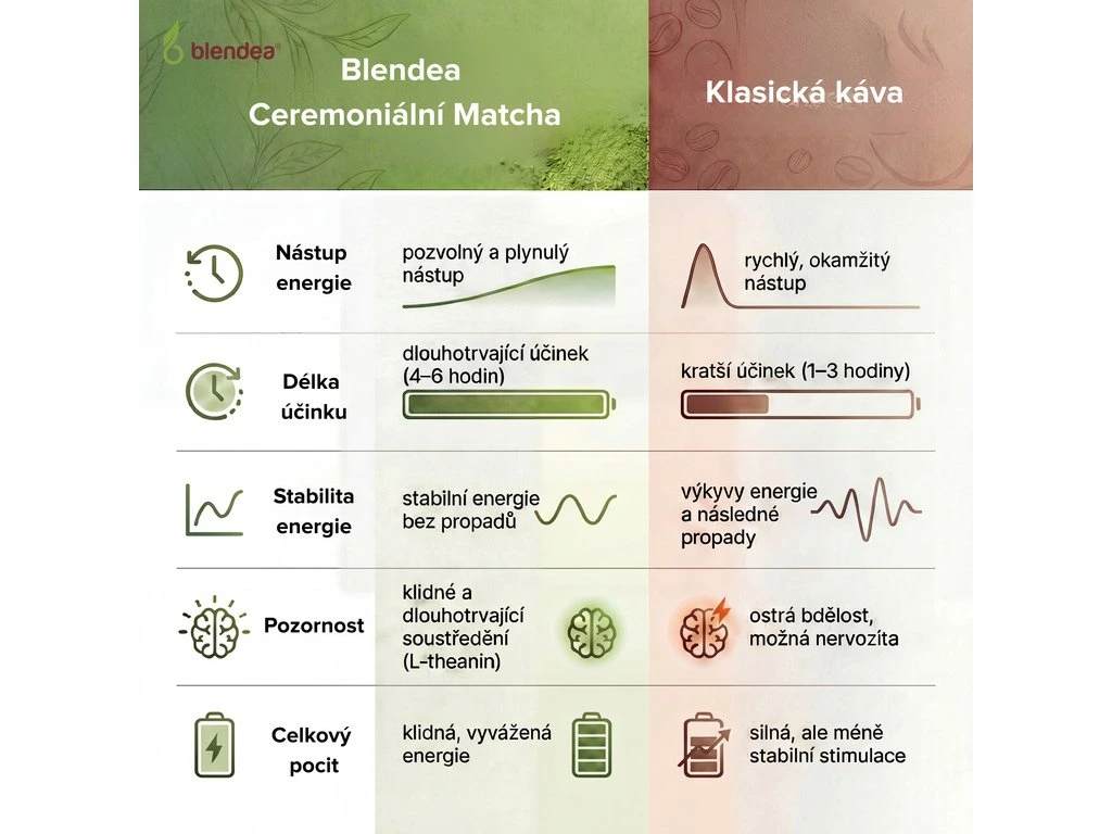 | Klíčová slova: | matcha, mača, ceremoniální matcha, 6A matcha, l-theanin, l-theanine, kofein, tein, energie, podpora energie, tvorba energie, čajovník, čaj, zelený čaj, chlorofyl, antioxidant, antioxidanty, imunita, obranyschopnost, podpora obranyschopnosti, podpora imunity, posílení imunity, bdělost, koncentrace, soustředění, katechin, kontrola tělesné hmotmosti, osvěžení, vitalita, únava, kognitivní zdraví, kognitivní funkce, hladina glukózy, metabolismus lipidů, povzbuzení, čajovník čínský, camellia sinensis |