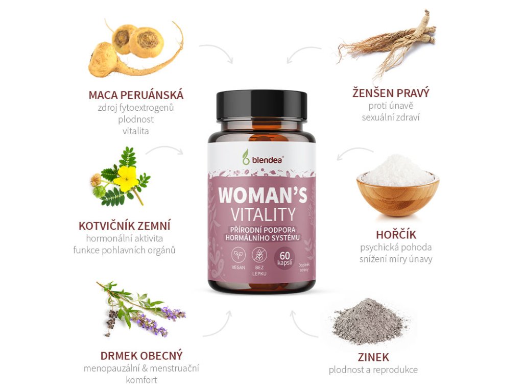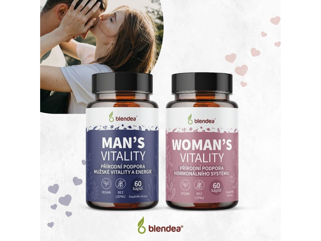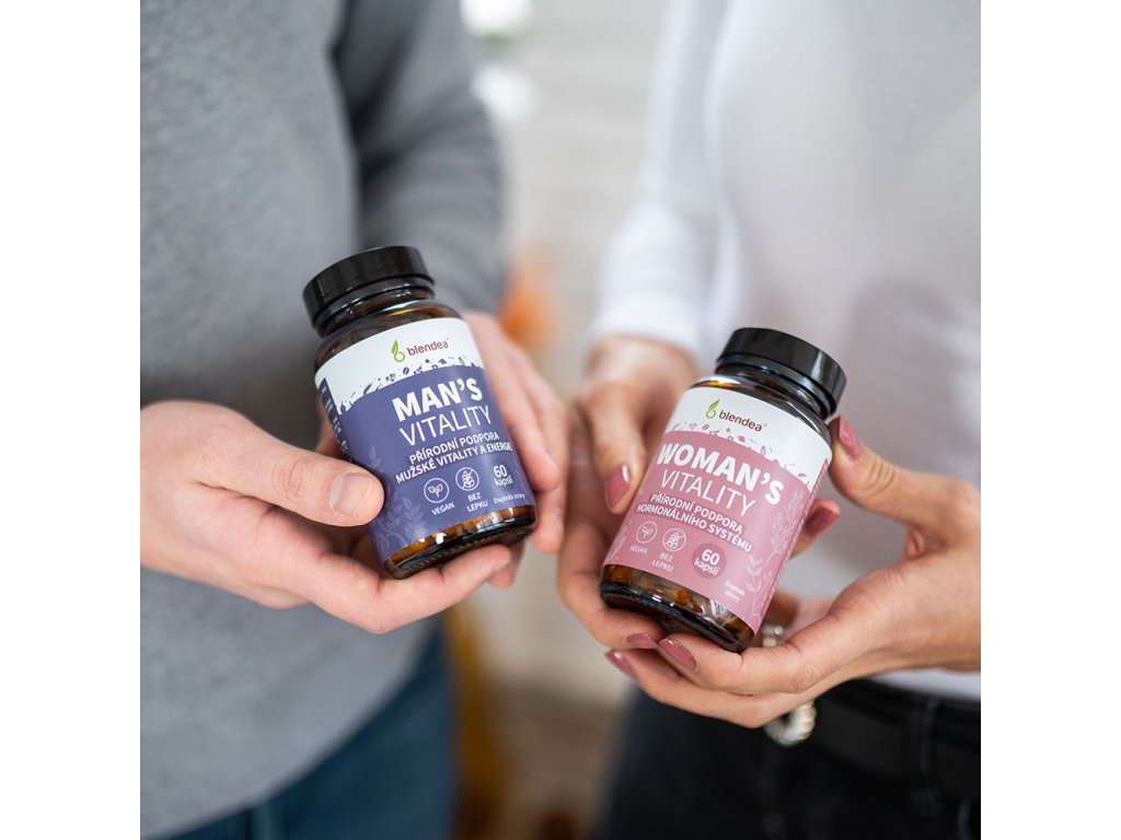 2 doplňky stravy Blendea Woman's a Man's Vitality za zvýhodněnou cenu pro páry, které chtějí podpořit své zdraví, hormonální rovnováhu a plodnost společně. | 2 x 60 kapslí