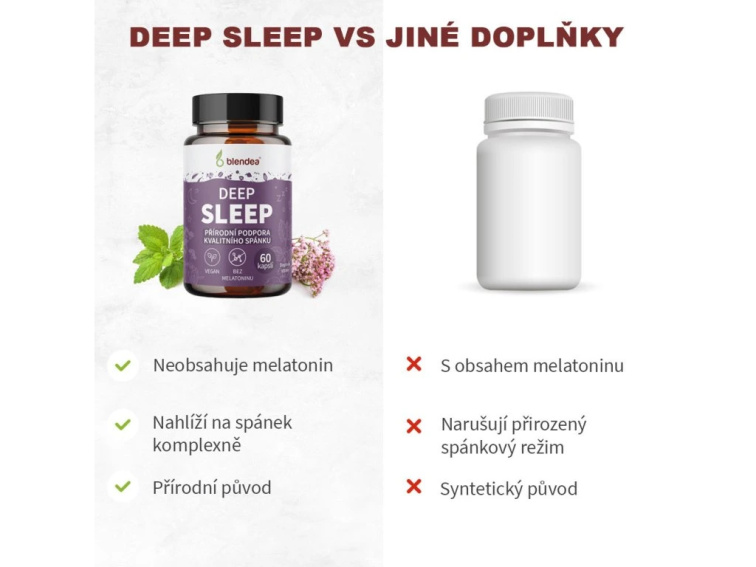 Kapsle Blendea Deep Sleep se směsí bylinek vám pomohou s usínáním a navodí kvalitní a hluboký spánek, po němž se vzbudíte plní energie a síly. | 20-30 dávek
