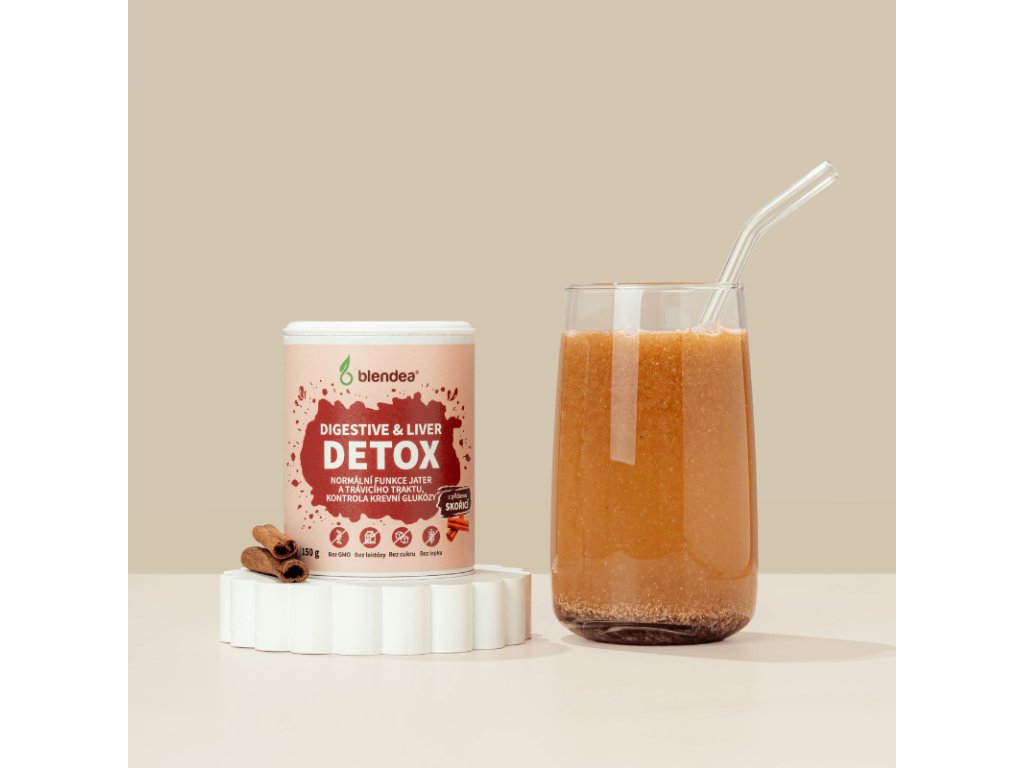 Blendea Digestive & Liver Detox díky obsahu rozpustné vlákniny a psyllia podpoří vaše játra i trávení. Navíc si můžete účinky doplňku vychutnat v lahodném nápoji bez polykání tablet. | 150 g, 50 dávek