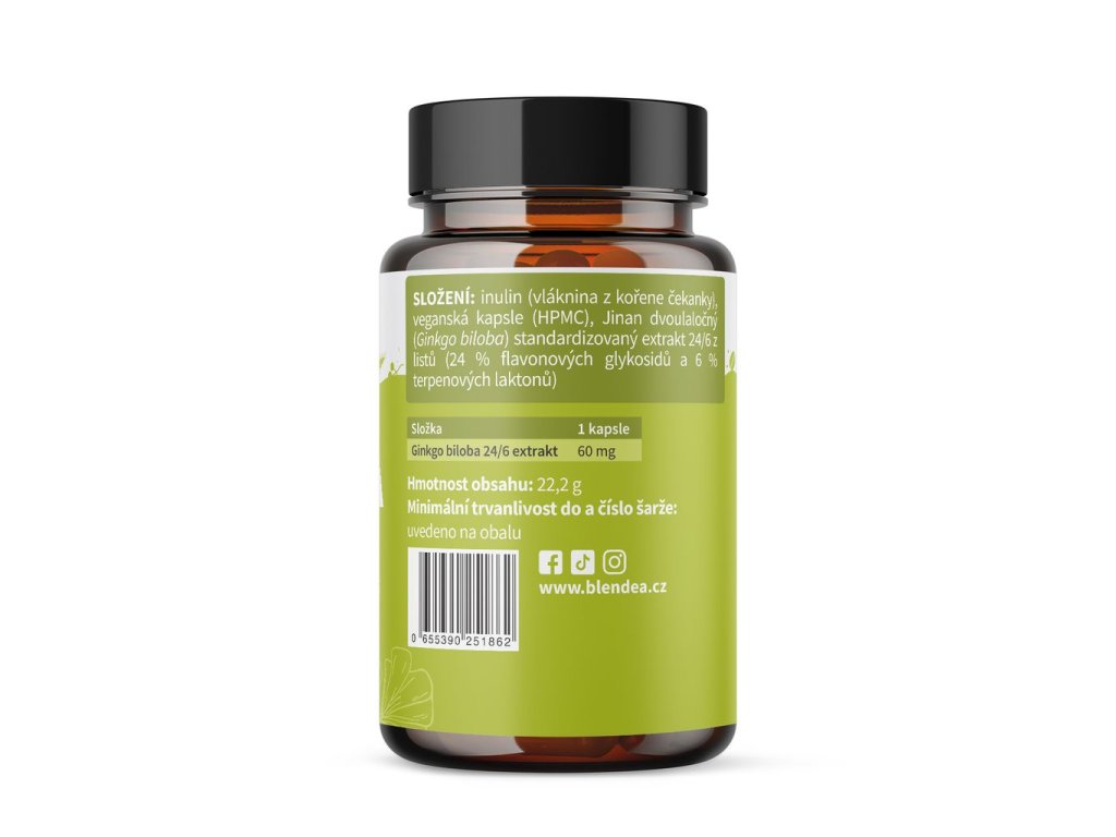 Pravidelným užíváním kapslí Ginkgo biloba Blendea podpoříte vitalitu paměti i ostatních důležitých kognitivních funkcí. | 60 dávek