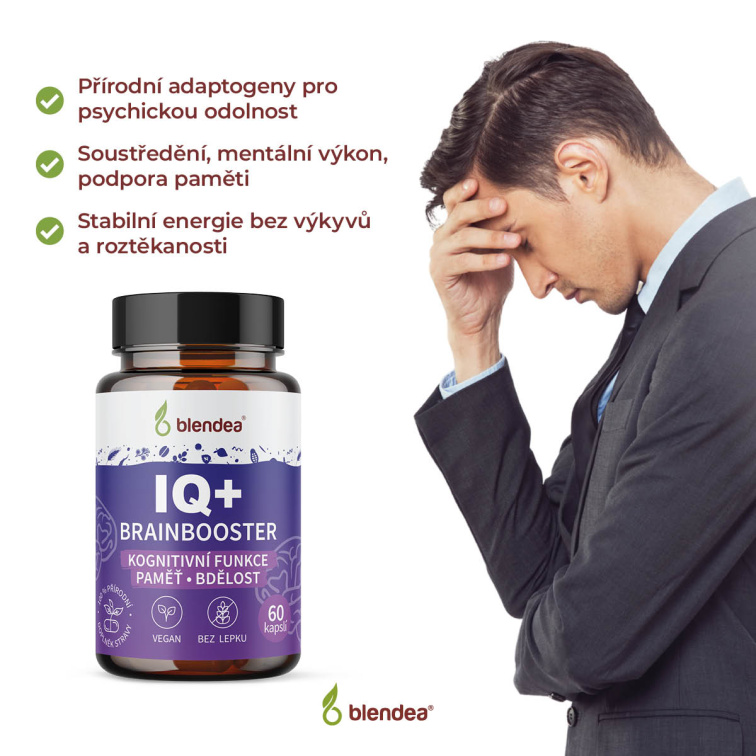 Vyvinuli jsme vyváženou kombinaci bylin a kofeinu v kapslích Blendea IQ+ Brain Booster: guarana pro povzbuzení, bacopa a rhodiola pro podporu paměti a soustředění. L-theanin pro vyvážení stimulačních účinků ostatních složek a udržení klidné mysli bez nervózní roztěkanosti. | 60 dávek