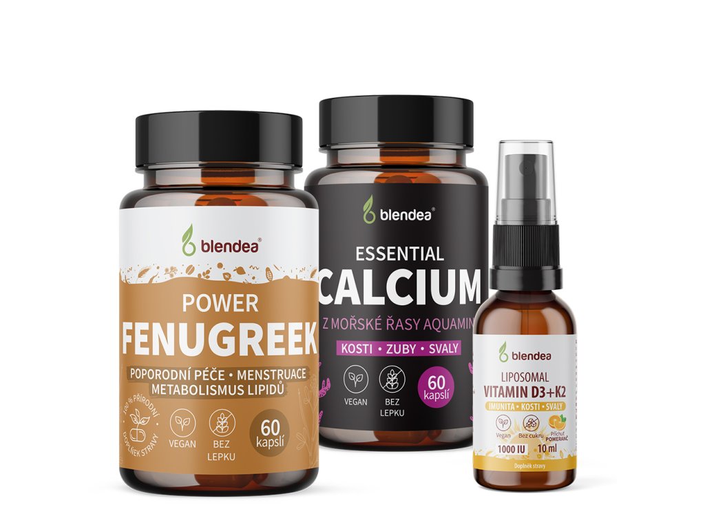Balíček Blendea Kojící maminka obsahuje vše, co matka potřebuje během kojení. Od minerálů pro pevné kosti až po vitaminy pro spolehlivou imunitu. | 2x 60 kapslí, 1x10 ml