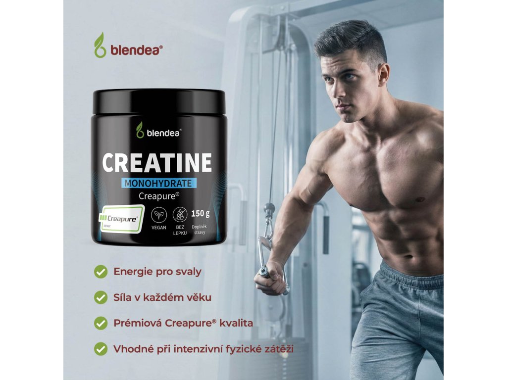 Blendea Kreatin monohydrát s ochrannou známkou Creapure® je vysoce kvalitní, čistý zdroj kreatinu s výbornou vstřebatelností.