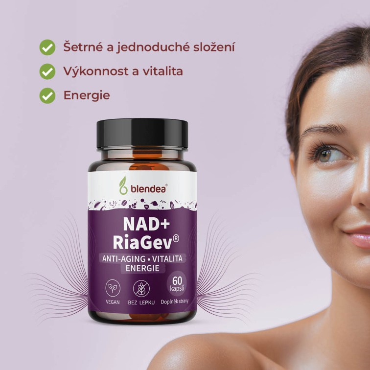 | Složení: | NAD+ RiaGev®, veganská kapsle (HPMC) |