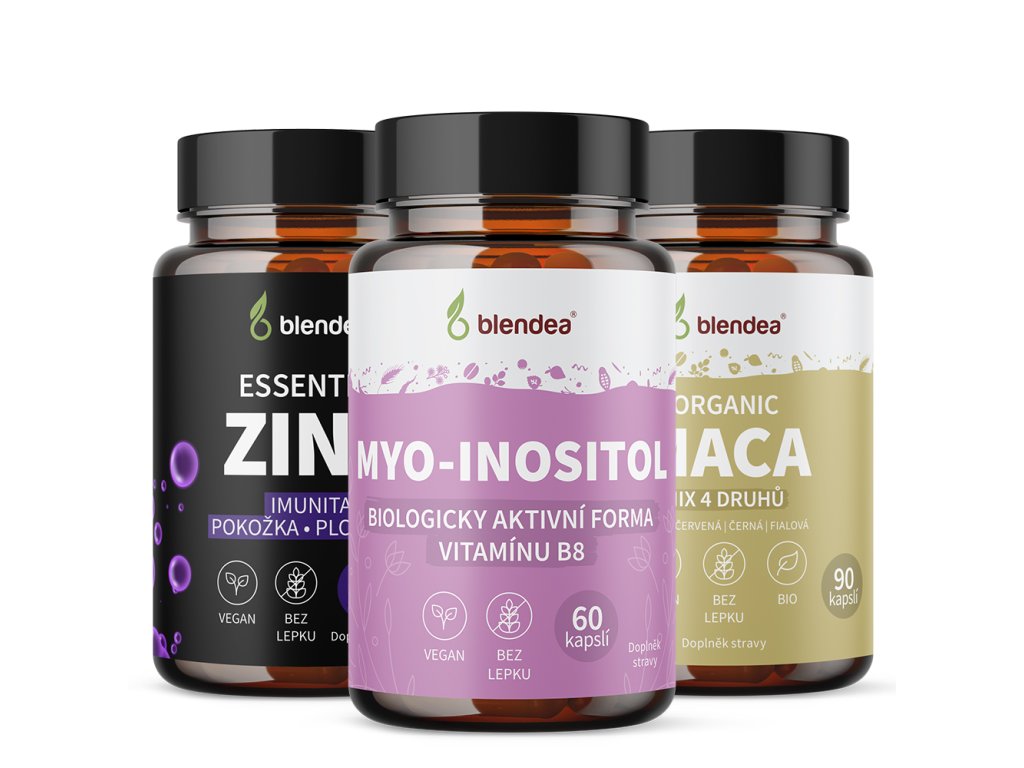 Zvýhodněný balíček doplňků Blendea cílí nejen na podporu ženské plodnosti, ale také na normální menstruační cyklus a hormonální rovnováhu. | 2x 90, 1x 60 kapslí