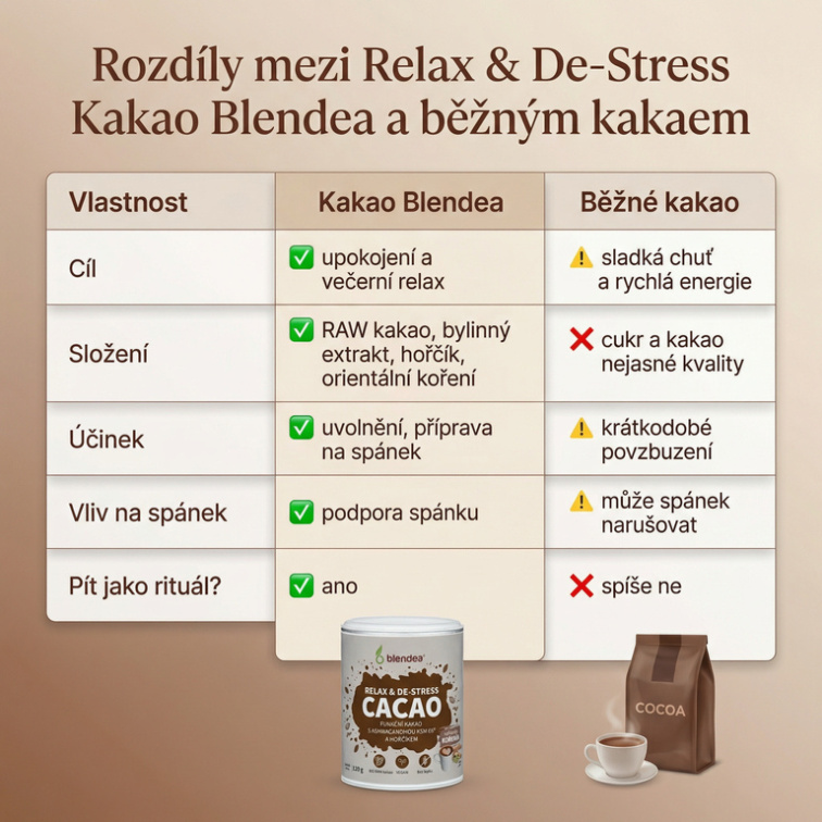 | Prodejní název: | Relax & De-Stress Cacao, doplněk stravy v prášku |