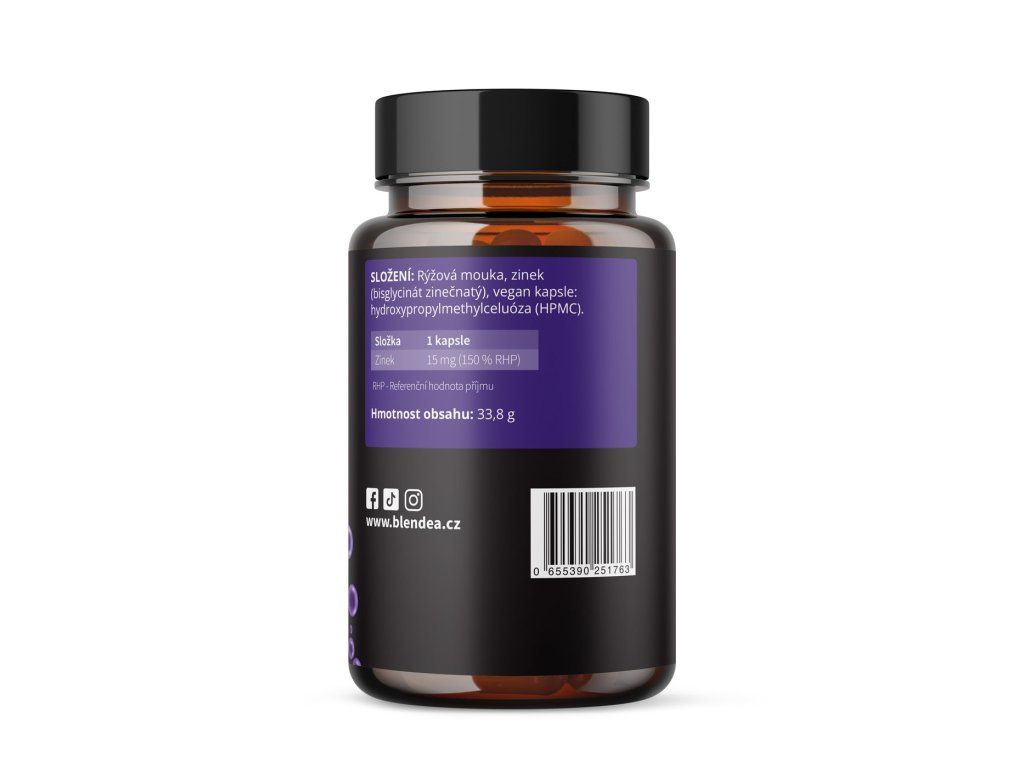 rýžová mouka, vegan kapsle (HPMC), bisglycinát zinečnatý |